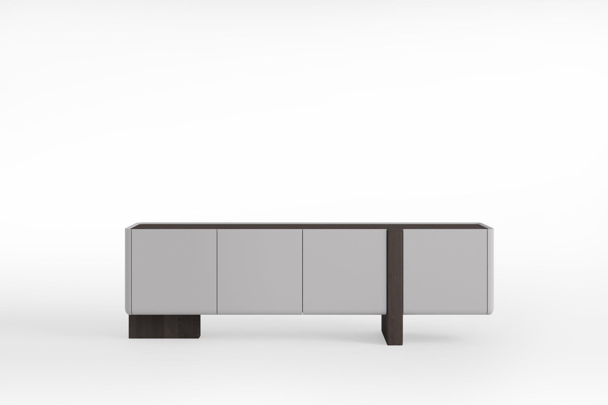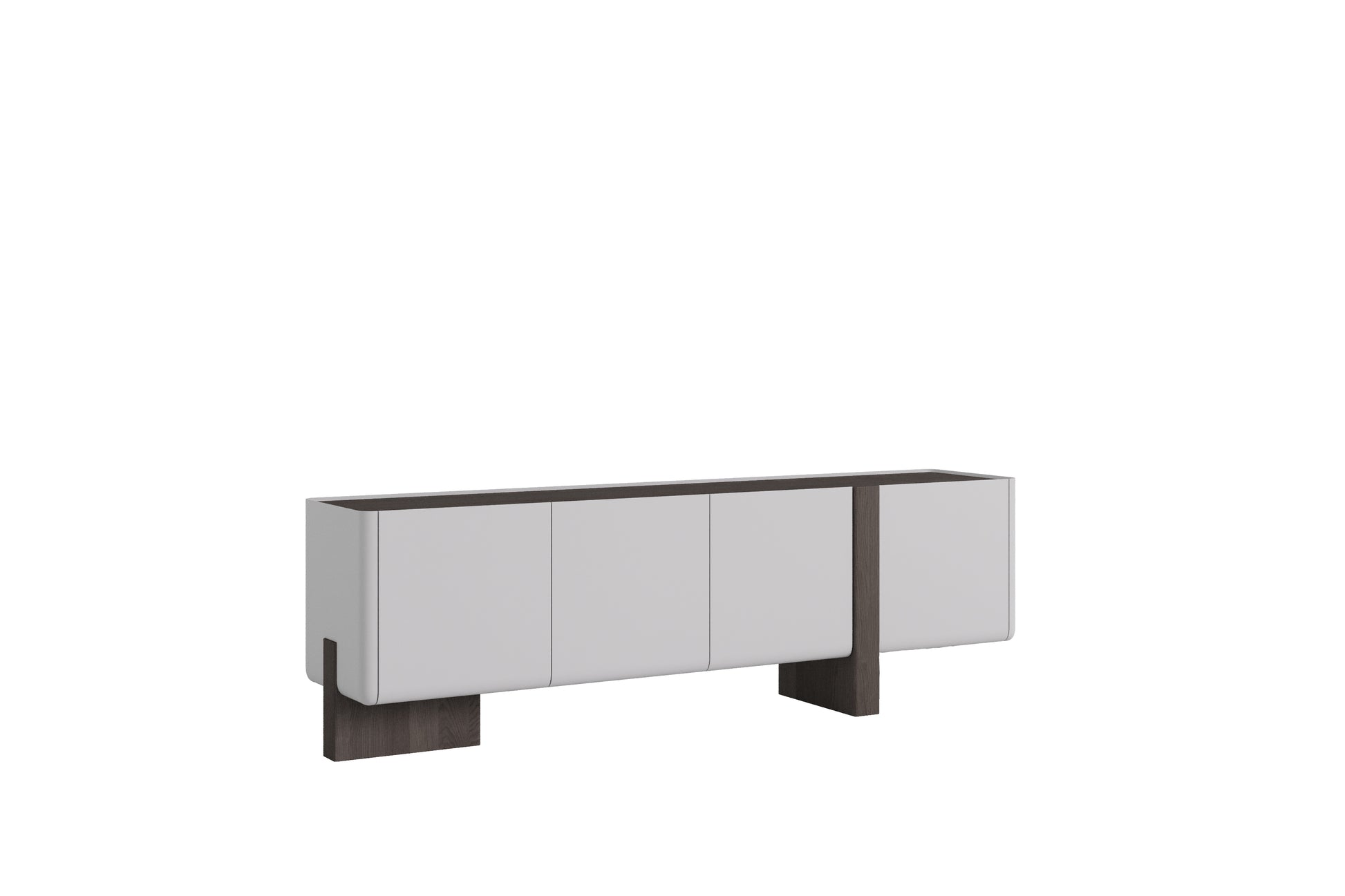 The Fiorden Sideboard is a sophisticated blend of sculptural form and everyday practicality, designed to elevate contemporary dining rooms, living spaces, and open-concept interiors. Its softened rectangular silhouette, rounded edges, and seamless matte-lacquered doors create a clean, calming presence, while the solid wood structural column adds a warm architectural contrast that defines the Fiorden Collection.