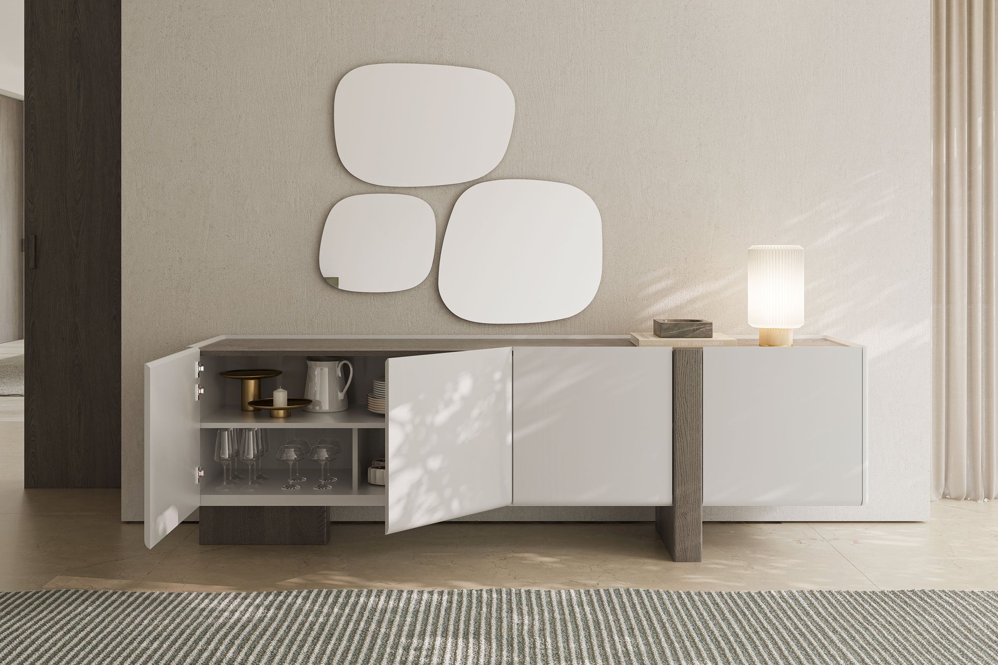 Crafted with meticulous attention to proportion, the Fiorden Sideboard features four spacious compartments with internal shelving—ideal for storing dinnerware, serveware, bar accessories, or everyday household essentials. Soft-closing doors ensure a smooth, quiet experience, while the elevated wooden base offers a visually light yet grounded profile.