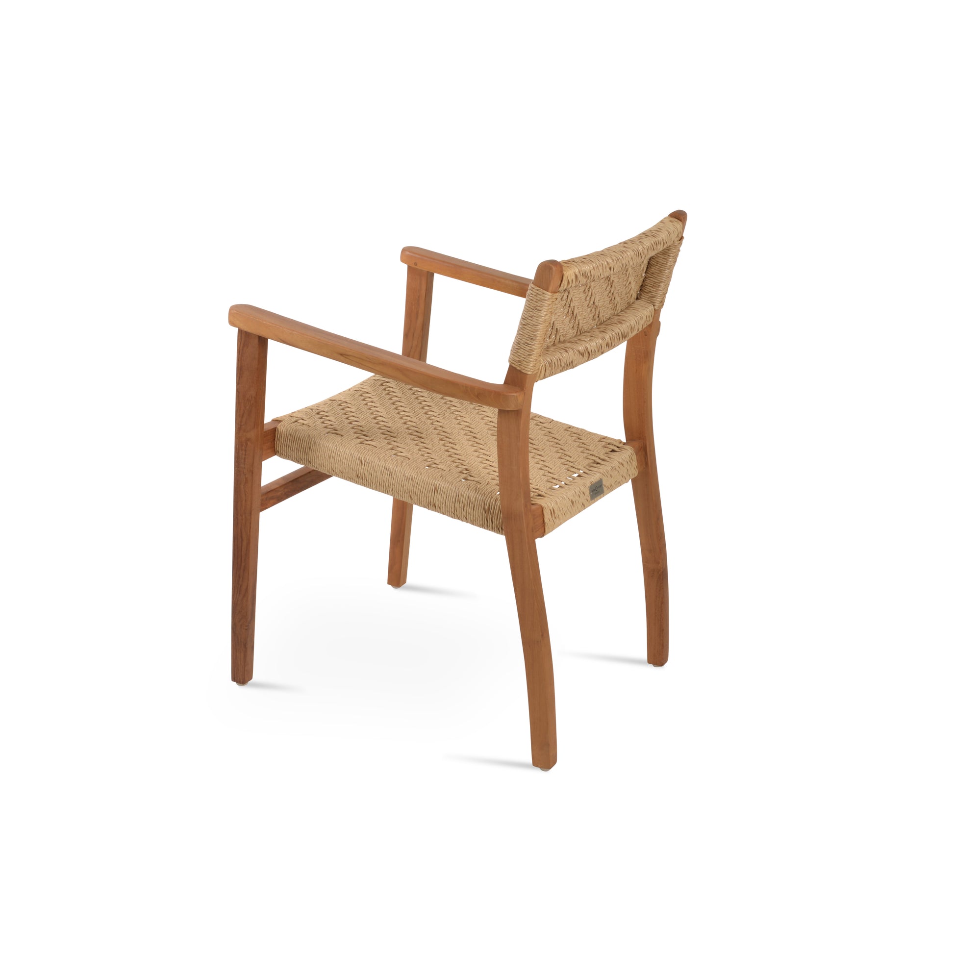 Une approche moderne du rétro scandinave… La chaise de salle à manger Palermo en teck est un ajout élégant et moderne à tout espace, avec une touche rétro scandinave qui lui confère une allure unique et distinctive. Son assise en corde synthétique, montée sur une structure en teck robuste, la rend idéale pour une utilisation en extérieur et résiste aux intempéries. Fabriquée en teck indonésien de qualité A et en osier en fibre Viro, cette chaise est conçue pour résister à toutes les températures. Adaptées à un usage commercial intensif, ces chaises de salle à manger en teck de qualité A sont construites avec un assemblage à tenons et mortaises robuste, garantissant durabilité et résistance. Le fauteuil Palermo en teck est une solution design idéale pour les environnements résidentiels et commerciaux. Matériaux : teck indonésien de qualité A, osier en fibre Viro. Dimensions : hauteur : 73 cm, largeur : 46 cm, profondeur : 50 cm, hauteur d'assise : 44 cm.